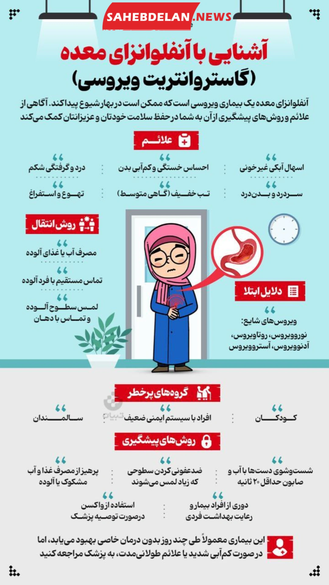 🔹آنفلوانزای معده یک بیماری ویروسی است که ممکن است در بهار شیوع پیدا کند. آگاهی از علائم و روشهای پیشگیری از آن به شما در حفظ سلامت خودتان و عزیزانتان کمک میکند