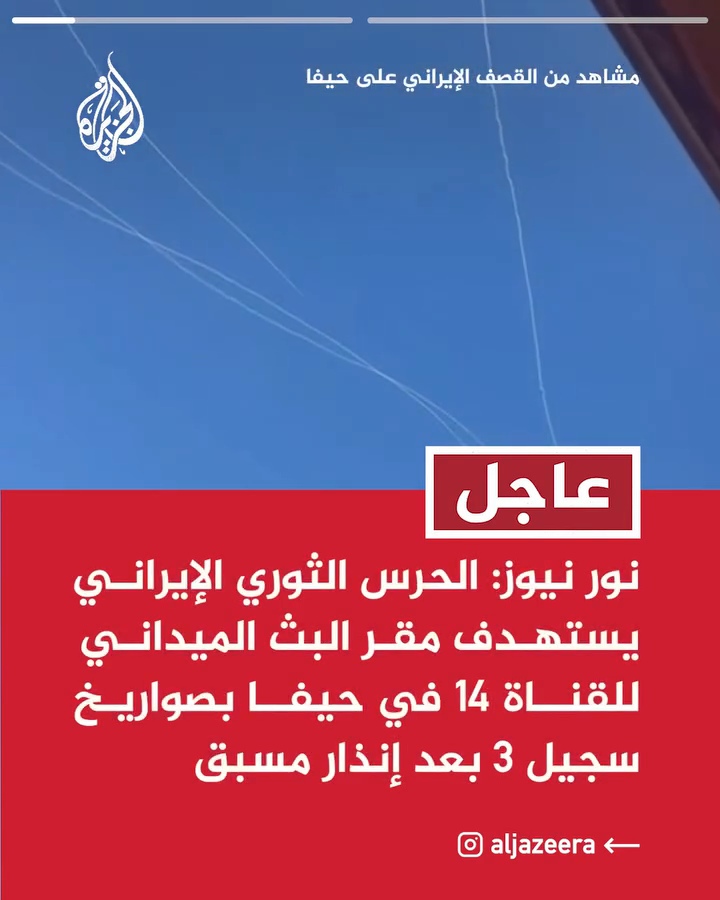 الجزیره: موشکهای ایرانی مقر پخش زنده «کانال ۱۴» در حیفا را بمباران کردند