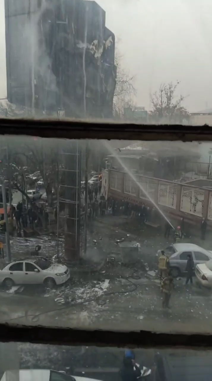 تصاویری از آتش گرفتن بلیبورد تبلیغاتی در میدان قدس تهران به علت قطع و وصل برق