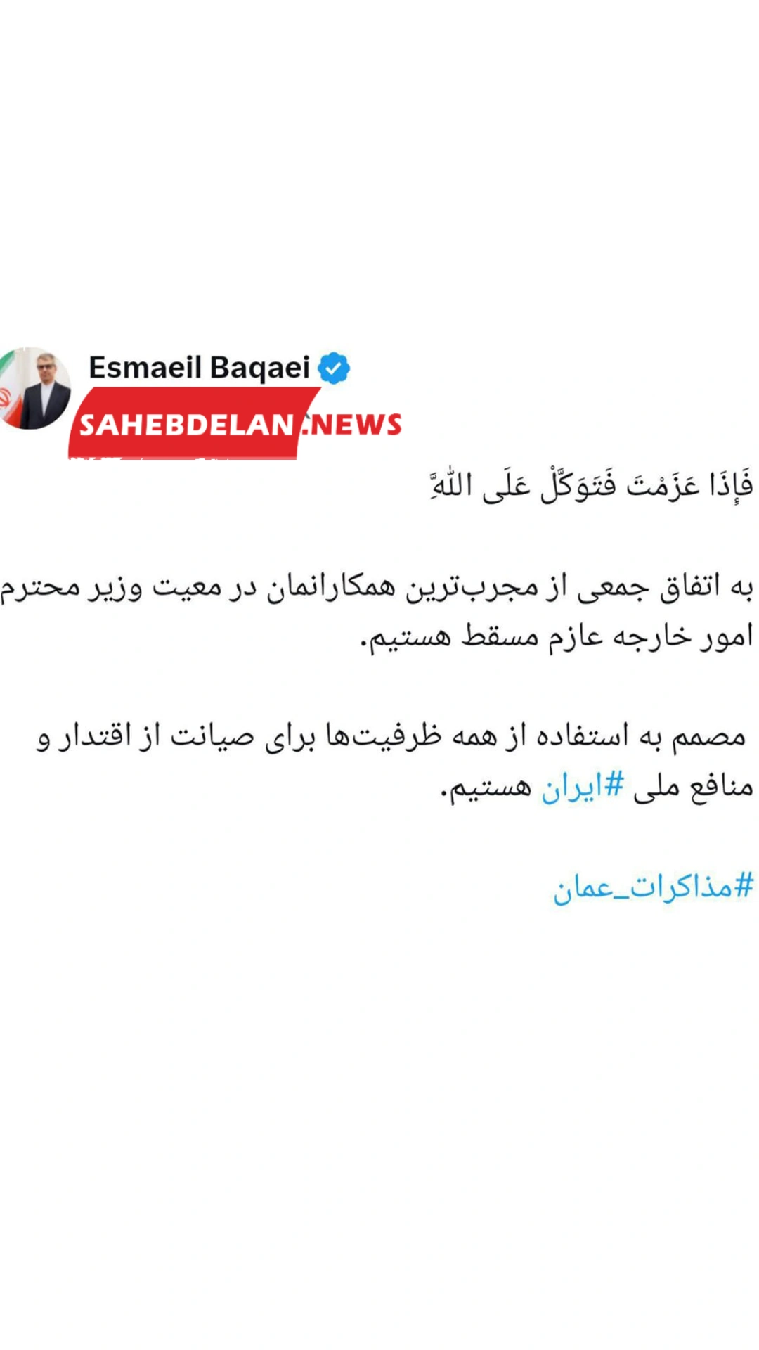 سخنگوی وزارت خارجه: تیم مذاکرهکنندۀ ایران به ریاست عراقچی عازم عمان شد. دسته بندی, سیاسی 1404/01/23 23 فروردین 1404