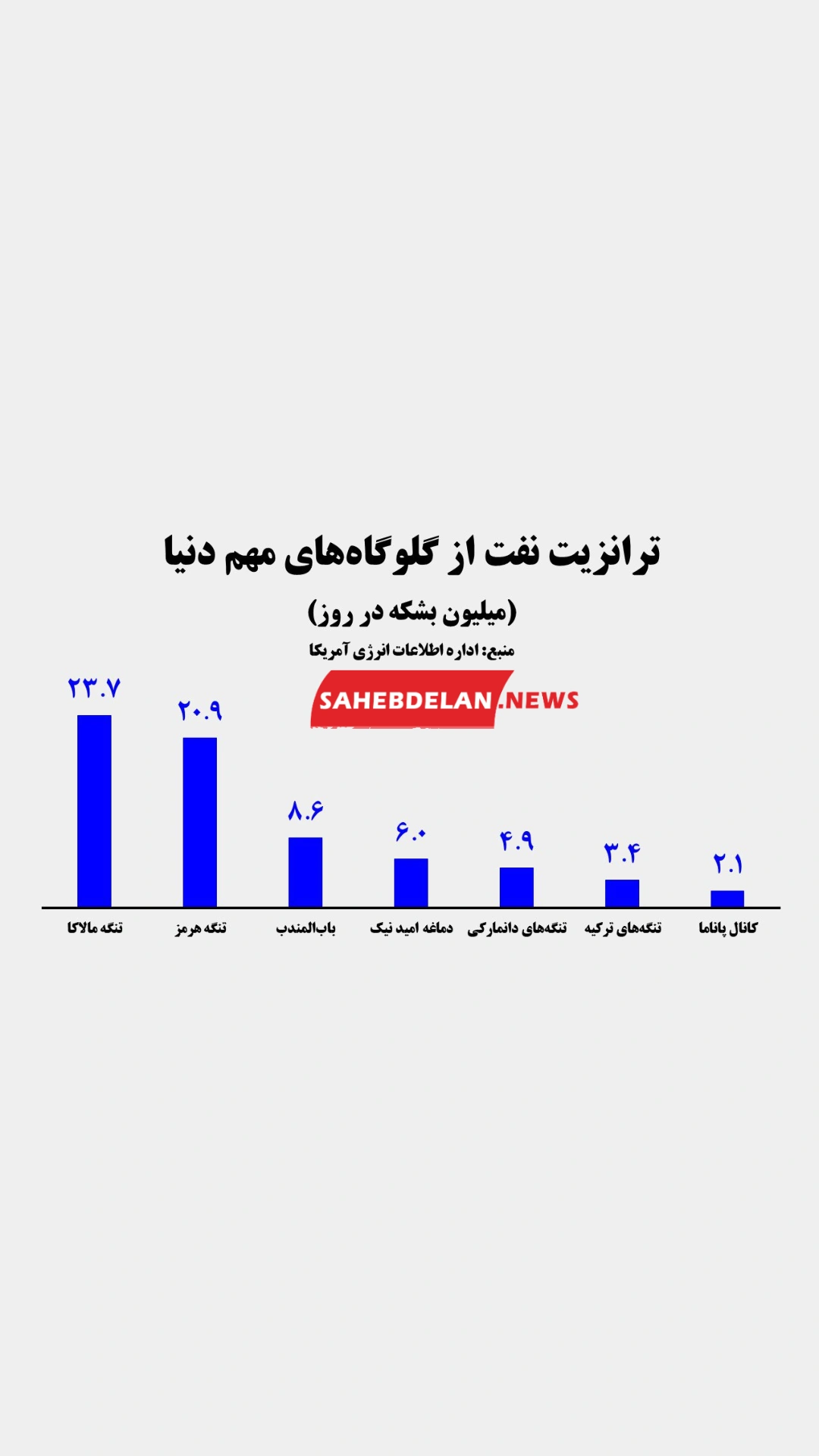 🔹 در سال ۲۰۲۳ تنگه مالاکا با عبور روزانه ۲۳.۷ میلیون بشکه نفت خام، بیشترین حجم ترانزیت را در بین گلوگاههای مهم نفتی دنیا داشته و حتی از تنگه هرمز با ۲۰.۹ میلیون بشکه نفت خام پیشی گرفته است.