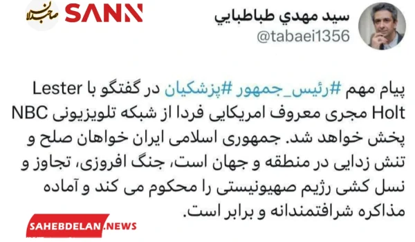 معاون ارتباطات و اطلاع رسانی دفتر رئیس جمهور:🔹پیام مهم رئیس جمهور پزشکیان در گفتگو با Lester Holt مجری معروف امریکایی فردا از شبکه تلویزیونی NBC پخش خواهد شد. 🔹جمهوری اسلامی...