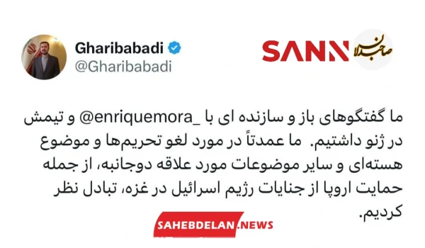 معاون حقوقی و بین المللی وزارت خارجه:🔹ما گفتگوهای باز و سازنده ای با انریکه مورا، معاون مسئول سیاست خارجی اتحادیه اروپا و تیمش در ژنو داشتیم. 🔹ما عمدتاً در مورد...