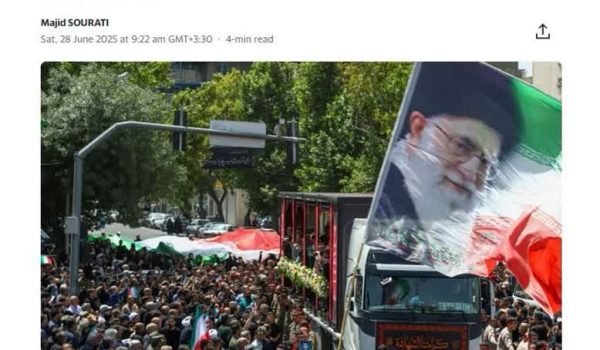 خبرگزاری فرانسه با انتشار حضور گسترده مردم در مراسم تشییع پیکرهای شهدای اقتدار، اعلام کرد که شرکت کنندگان در این مراسم، تصاویر رهبر انقلاب اسلامی و پرچم ایران را در...
