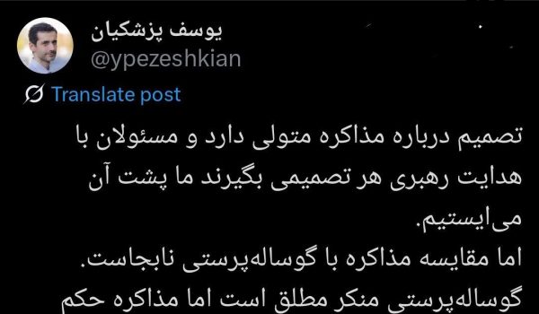 یوسف پزشکیان:🔹تصمیم درباره مذاکره متولی دارد و مسئولان با هدایت رهبری هر تصمیمی بگیرند ما پشت آن میایستیم. 🔹اما مقایسه مذاکره با گوسالهپرستی نابجاست. 🔹گوسالهپرستی منکر مطلق است اما مذاکره...